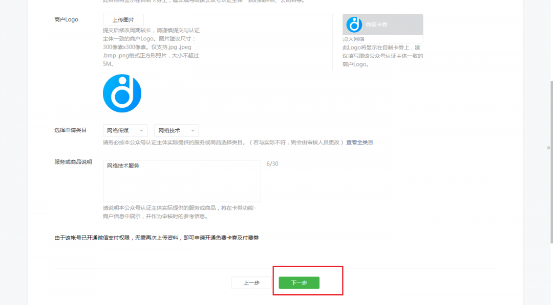 第六步,填寫商戶信息,點擊下一步