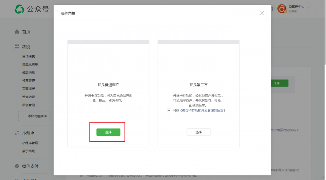 第二步,在[功能]-[添加功能插件]中找到[卡券功能],點擊進(jìn)入