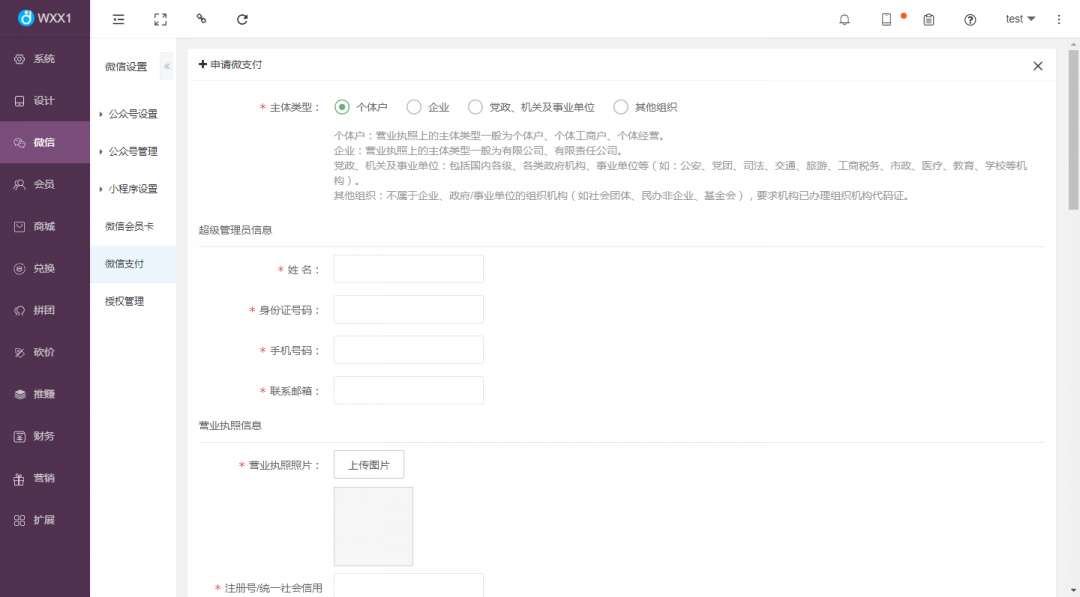 簽約完成后在【系統(tǒng)】-【系統(tǒng)設(shè)置】中填寫(xiě)商戶(hù)號(hào)及密鑰即可完成微信支付配置